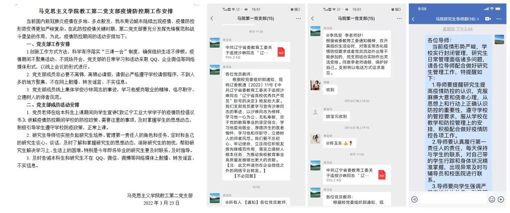 一个集体、七十一名党员,齐心协力做好疫情防控基础工作。教师党员坚守师德规范,践行育人初心,率先垂范做好各项工作。全体教师认真做好线上备课,组织教师参加培训学习,落实立德树人根本任务,加强家校沟通,线上教学有序进行,有效形成疫情防控工作合力,做到宣教、排查、管控、督导、关爱“五个到位”,保障各项工作正常运转。研究生党员永葆党员本色,充分发挥模范带头作用,党员带头宣传、贯彻、落实疫情防控措施,守纪律,会判断,听指挥,严格规范自身行为。研究生理论宣讲团备讲工作有序开展,紧跟党组织工作部署,学习疫情防控精神、捕捉疫情防控感人事迹,为宣讲党的最新理论注入鲜活的素材。公司全体研究生党员以身作则、自觉加强个人防护,保持良好的卫生习惯,作息规律,适当锻炼;认真完成线上学习任务,积极发挥模范带头作用,为校园疫情防控贡献青春力量。公司研究生党员始终保持思政人的政治敏感性,坚决抵制谣言,努力做清朗校园环境的营造者、党的创新理论的传播者,以实际行动为党旗增辉、为党徽添彩,凝聚防疫抗疫的强大向心力。