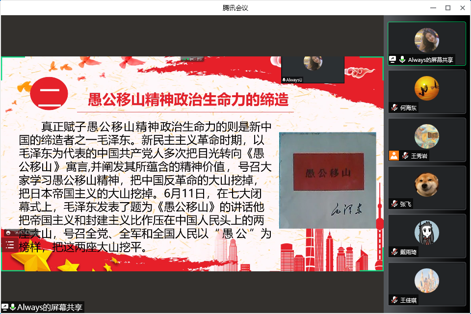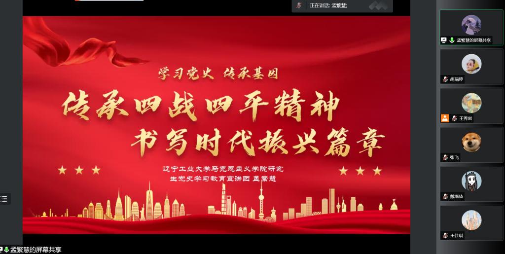 公司研究生党史学习教育宣讲团继2021年获评辽宁省老员工红色理论宣讲团之后2022年7月再次入选,充分展现了公司研究生扎实的知识积累和深厚的专业素养。此次理论宣讲主题党日,是公司党总支开展庆“七一”系列活动之一,也是公司深入开展党史学习教育的重要举措。6名宣讲团成员的精彩讲解为本次活动注入了鲜活的动力,全体研究生党员、积极分子纷纷表示在今后学习、工作中要充分利用自身所学马克思主义理论学科的优势,努力学习和宣传红色文化,深入挖掘红色精神,汲取精神力量,传承红色基因,赓续红色血脉,以实际行动继续发扬坚韧不拔、艰苦奋斗的革命传统,以梦为马,不负韶华,听党话、跟党走,为实现中华民族伟大复兴的中国梦贡献智慧和力量,努力在青春的赛道上跑出自己的最好成绩。(王秀岩、胡瑞婷、何海东、王佳琪 文/图)