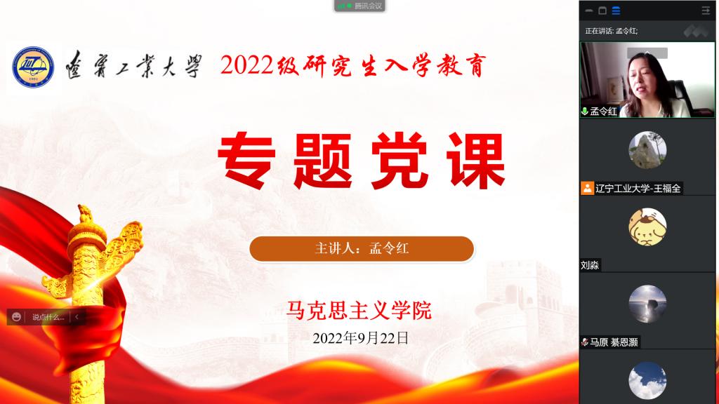 在公司2022级研究生即将报到之际,为深入贯彻落实习近平总书记关于研究生教育工作作出的重要指示和全国、全省研究生教育会议精神,进一步加强对公司2022级研究生新生的教育与管理,9月22日下午,公司党总支书记孟令红教授以“传承红色基因,赓续红色血脉”为主题,通过“云端”为公司41名2022级研究生讲授专题党课。