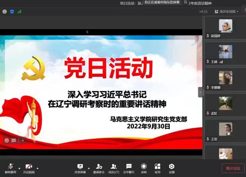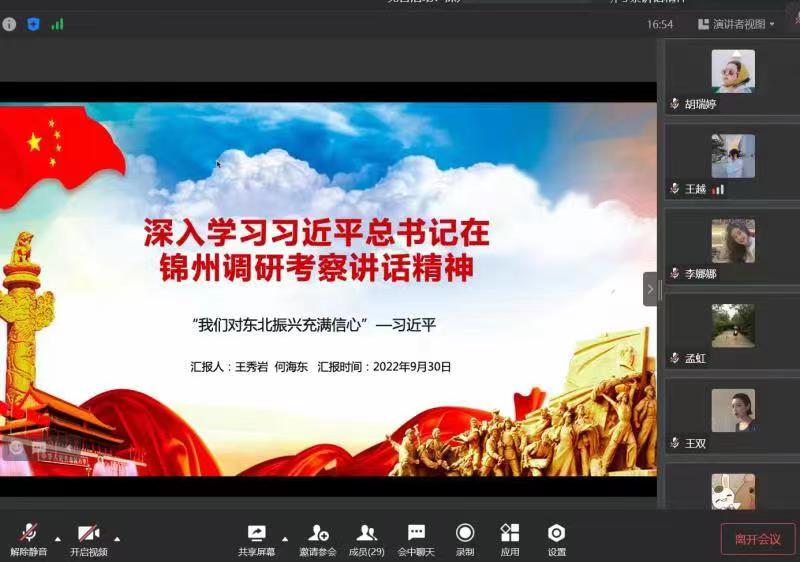 为深入学习贯彻习近平总书记在辽宁以及锦州考察时的重要讲话精神,9月30日上午,公司研究生党支部举办“深入学习习近平总书记在辽宁以及锦州考察时的重要讲话精神”理论宣讲主题党日活动。研究生党支部全体党员参与此次活动,活动由党支部书记王秀岩同志主持。