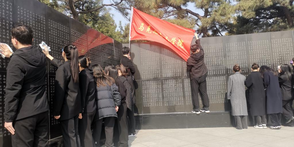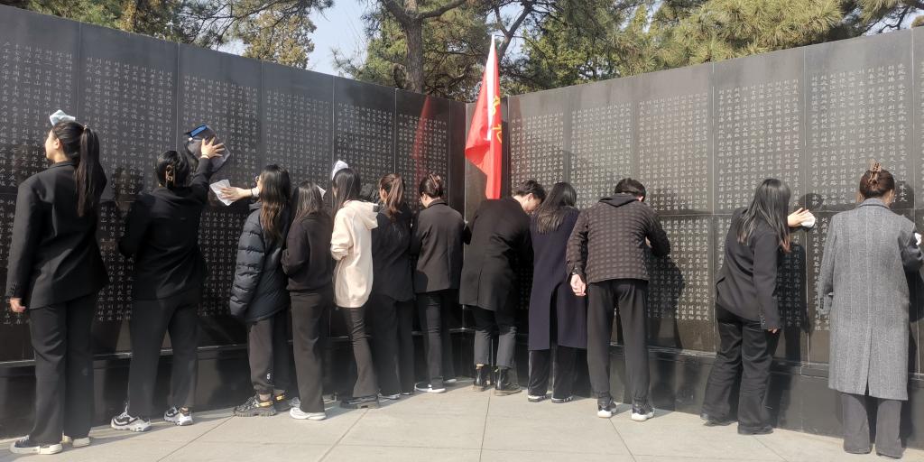 公司研究生擦拭烈士纪念碑
