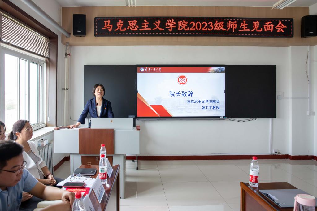 最后,公司经理兼党总支副书记张卫平教授讲话。她介绍了BB贝博艾弗森官网的基本情况,并向2023级研究生提出了“三学三做”的要求,一是学做人,学思用贯通、知信行统一;二是学做学问,脚踏实地、勤勤恳恳;三是学做事,勇于担当、善于作为。她希望全体研究生成为政治信仰坚定、思想品行高尚、心理人格健康的真正的马克思主义者。