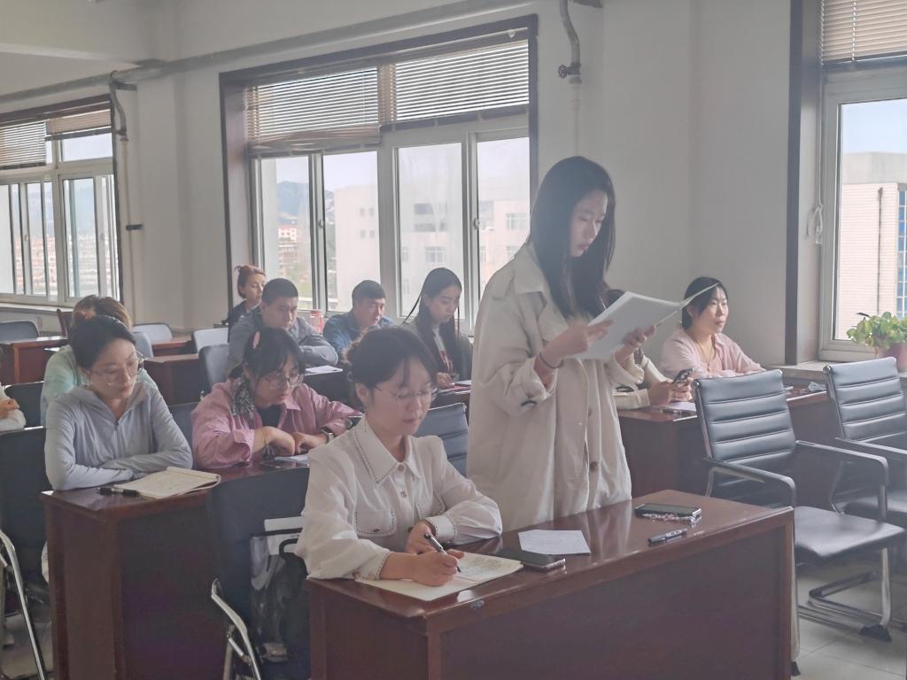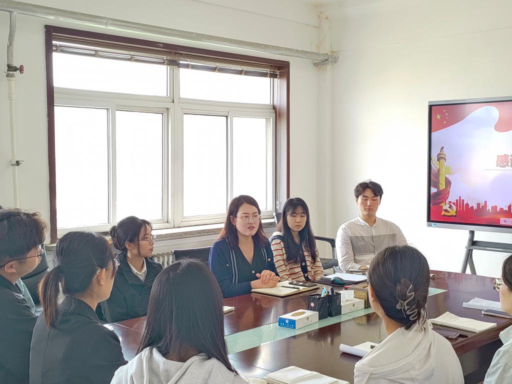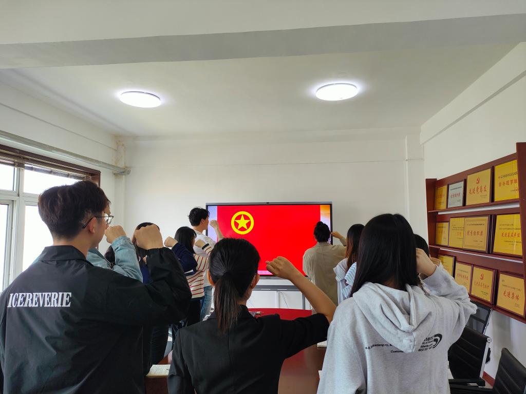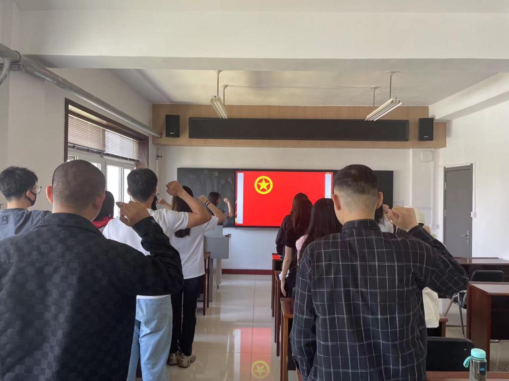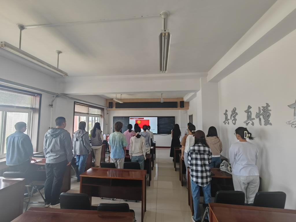 5月21日10:00,2023级1班团支部在第三教学楼816教室开展“牢记殷切嘱托,不负切切期望”主题团课活动。活动中,首先,团支部书记贾艳洁带领全体同学共同学习了五四精神的丰富内涵和时代价值,重温了习近平总书记关于青年工作的重要论述。其次,共同收看2024年五四青年节特别推出的主题微视频《以奋斗姿态激扬青春》,支部成员交流讨论,大家纷纷表示,要坚定理想信念,勇担时代重任,练就过硬本领,在青春的赛道上跑出当代青年的最好成绩。最后,全体团员面对团旗,在支部书记的带领下,重温入团誓词,坚定“青春向党,不负嘱托”的决心。