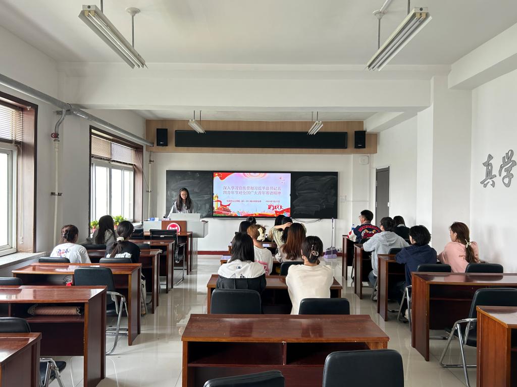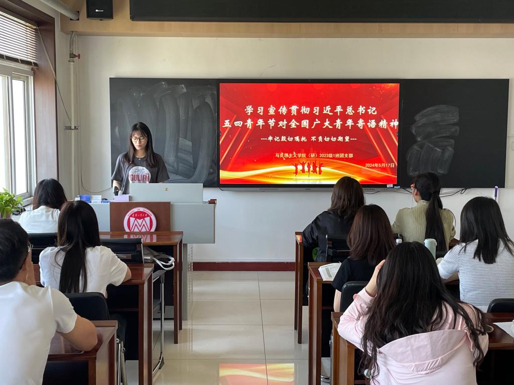 5月24日10:40,2022级2班团支部在第三教学楼816教室举行学习宣传贯彻习近平总书记五四青年节对全国广大青年寄语精神主题团日活动。首先,团支部书记郭思雨带领大家共同学习了习近平总书记五四青年节对广大青年的寄语内容,深入了解了五四青年节的由来和历史意义。其次,通过观看五四青年节短视频和交流讨论,引领团员和青年继承和发扬五四精神,以实际行动在推进强国建设、民族复兴伟业中展现青春作为、彰显青春风采、贡献青春力量。最后,全体成员在支部书记的带领下,重温入团誓词,表达了“奋力书写为中国式现代化挺膺担当的青春篇章”的坚定决心。