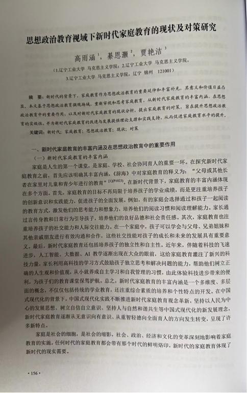 师生论文入选第四届全国家风文化论坛论文集