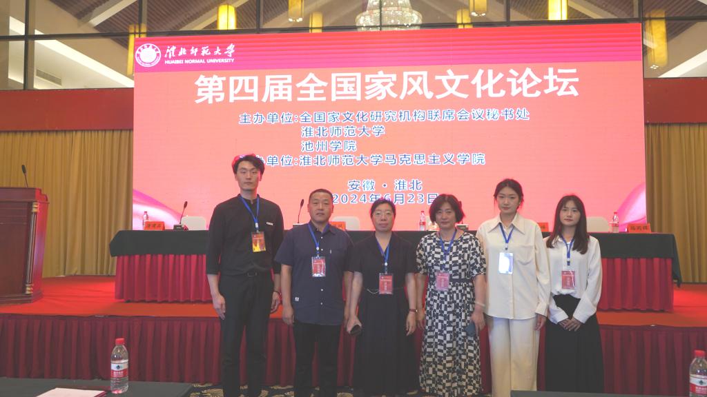 家风正则民风淳,民风淳则社稷安。为更好地继承和弘扬中华优秀传统文化,研究传统家风家教的历史传承,由全国家文化研究机构联席会议秘书处、淮北师范大学、池州公司共同主办,淮北师范大学BB贝博艾弗森官网承办的第四届全国家风文化论坛6月23日在安徽省淮北市举行。公司副经理镡鹤婧,“习近平新时代中国特色社会主义思想概论”教研室主任张龙、“马克思主义基本原理”教研室王雅芬老师、研究生綦恩灏、高雨涵、贾艳洁受邀参加此次论坛。