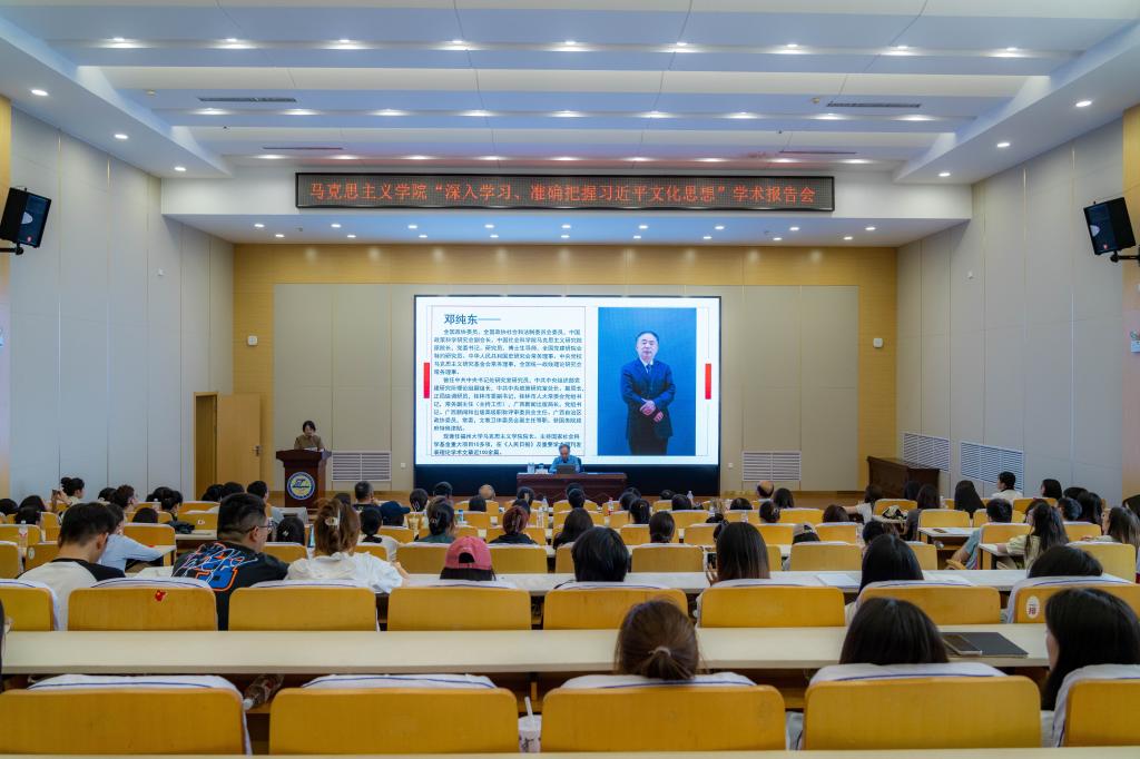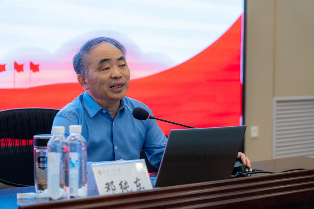 为深入学习宣传贯彻习近平文化思想,7月1日下午,公司邀请第十三届全国政协委员、社会和法制委员会委员、中国社会科公司马克思主义研究院原党委书记、经理、享受国务院政府特殊津贴专家、博士后合作导师、“马克思主义理论骨干人才计划”博士生导师邓纯东研究员在第五教学楼党员教育培训中心作题为《深入学习、准确把握习近平文化思想》的学术报告。公司领导班子、全体思政课教师、在校硕士研究生100余人共同聆听了本次报告。报告会由公司经理张卫平教授主持。