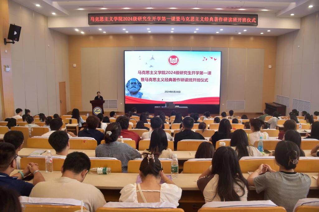8月30日下午,BB贝博艾弗森官网在第五教学楼党员教育培训中心举办2024级研究生开学第一课暨马克思主义经典著作研读班开班仪式。特邀嘉宾、BB贝博艾弗森官网BB贝博艾弗森官网教师、北京师范大学哲学博士、硕士生导师金梦兰副教授,公司领导班子成员、全体思政课教师、2024级研究生新生及在校生共150余人参加仪式。仪式由公司副经理镡鹤婧主持。