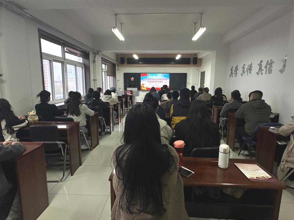 为认真学习贯彻习近平总书记关于深入贯彻中央八项规定精神学习教育的重要讲话和重要指示精神,在全党开展深入贯彻中央八项规定精神学习教育之际,4月11日,公司研究生党支部书记位宇洋在第三教学楼816教室为支部全体党员讲授“深入贯彻中央八项规定精神 加强党的作风建设”的专题党课。